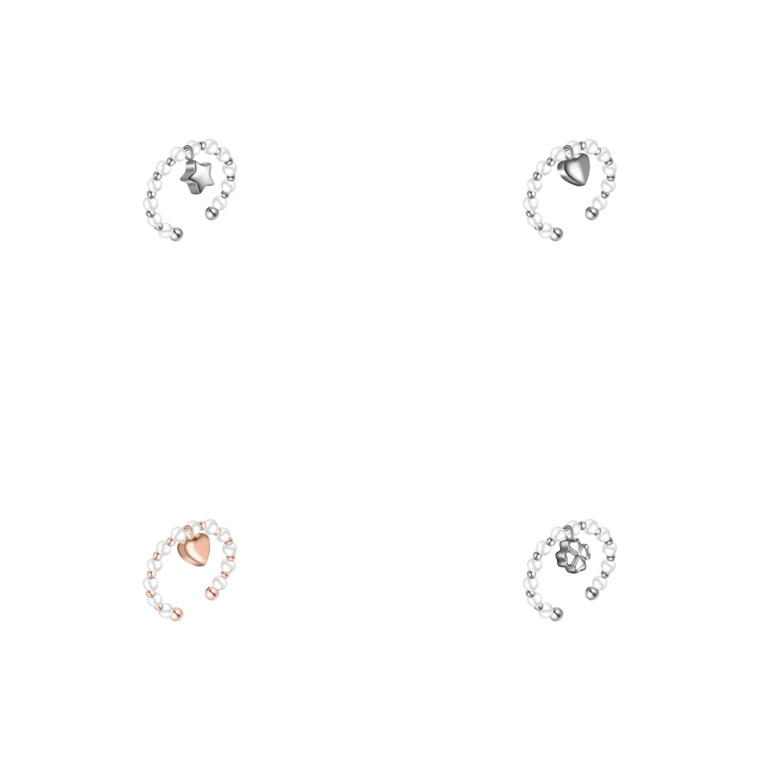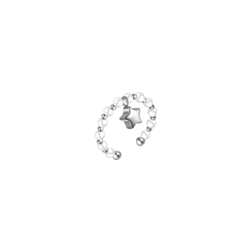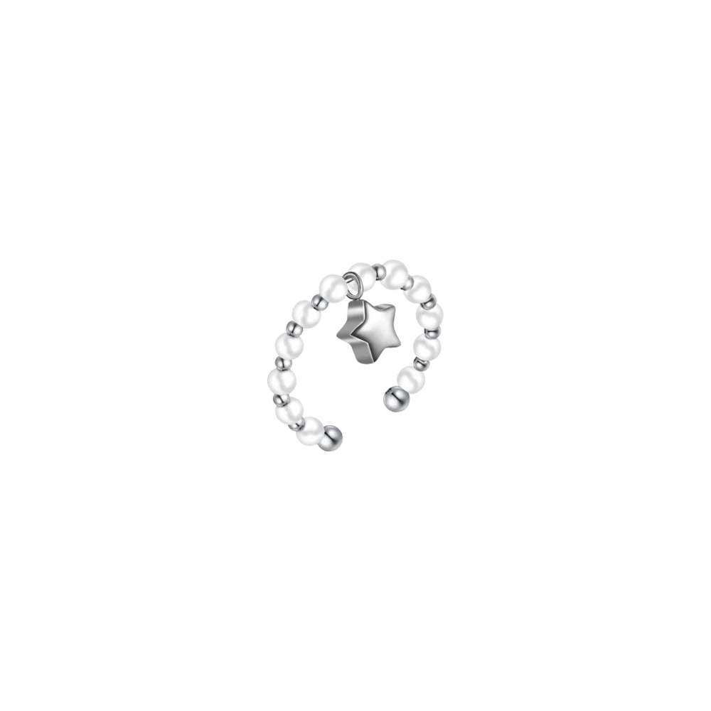 Anello donna in acciaio e perle bianche con ciondolo. Misura regolabile Misura ciondolo: 8 x 5 mm Diametro perle bianche: 3,5 mm Aggiungi un tocco di magia al tuo look con questo anello che unisce la lucentezza delle perle bianche in acciaio e tradizionali. Il ciondolo , con il suo design scintillante, dona un’accenno di raffinatezza, perfetto per chi desidera un gioiello che parla di sogno e bellezza