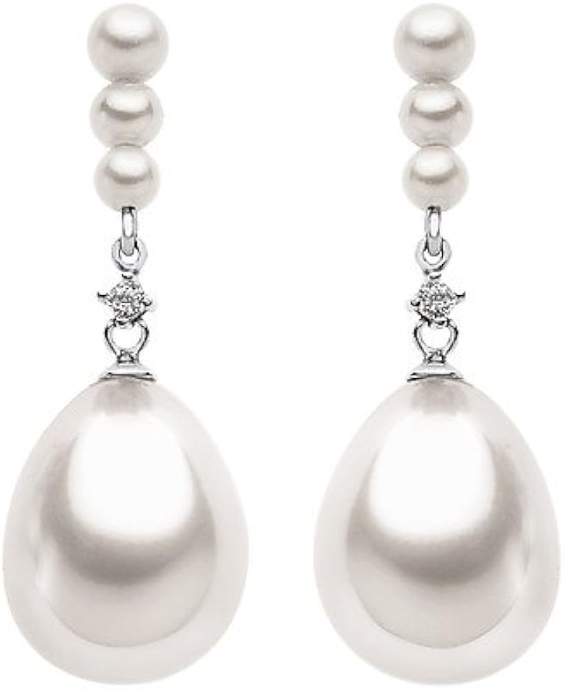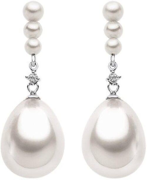 Orecchini in Oro 18 Kt , Dimanti P Ct 4 G Color SI e Perle Coltivate 2.5/3 e 3/3.5 e Perla a Goccia 5mm