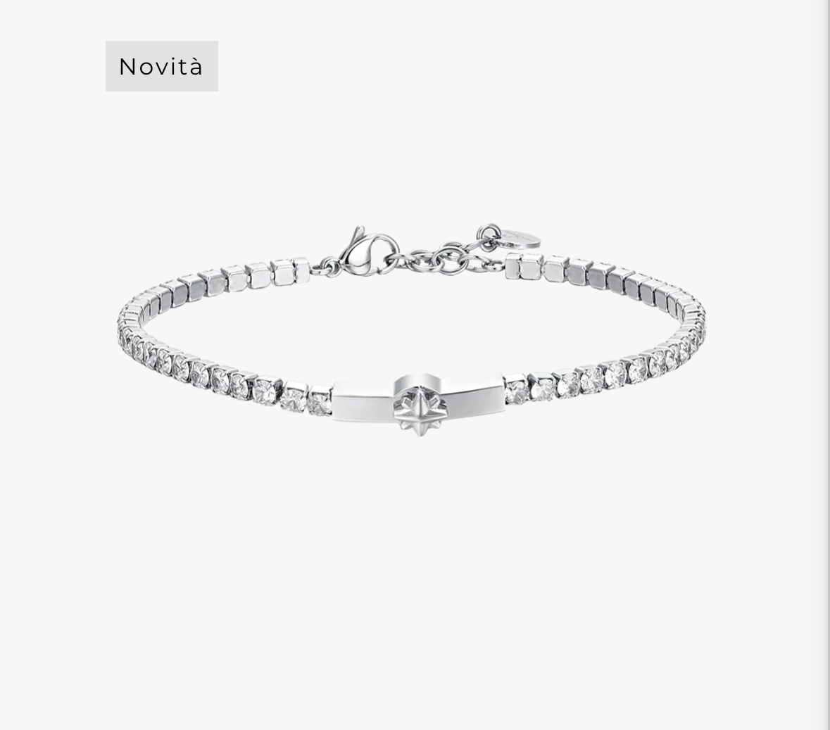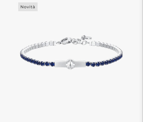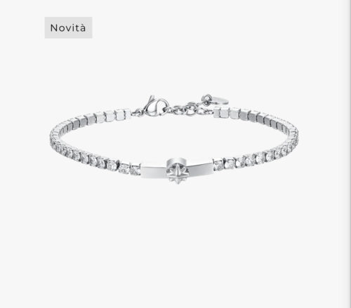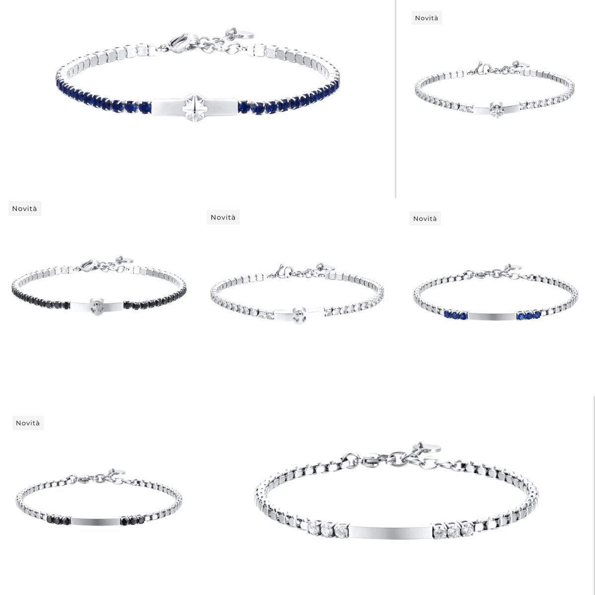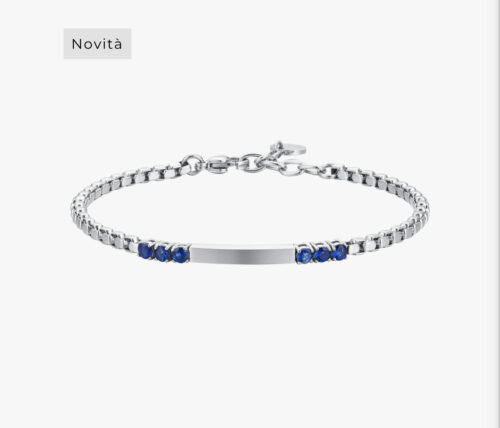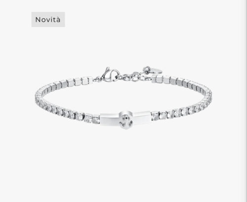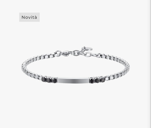 Bracciale Uomo tennis in acciaio con  zirconi bianchi. Lunghezza: 19 + 3 cm. Misura piastra: 20 x 6,5 mm. Diametro zircone: 3 mm. Spessore maglia: 3 mm. Questo elegante bracciale tennis da uomo in acciaio unisce lo stile contemporaneo con un simbolismo classico.