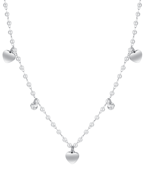 Collana in Acciaio Donna con Perle e Zirconi